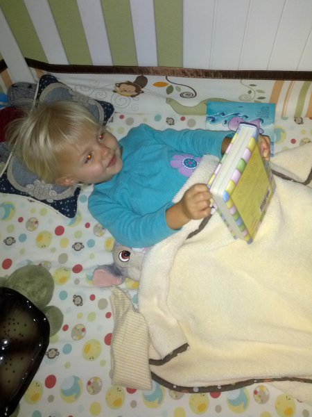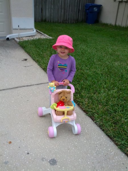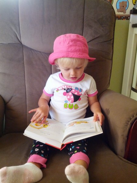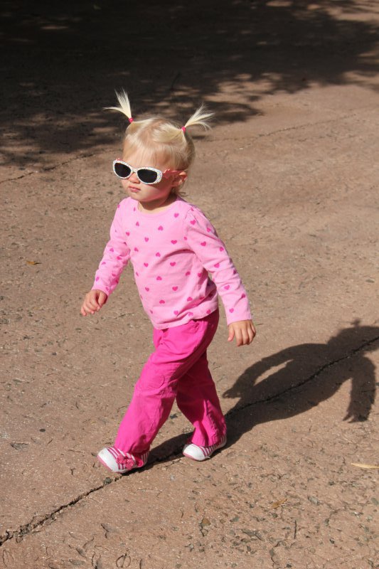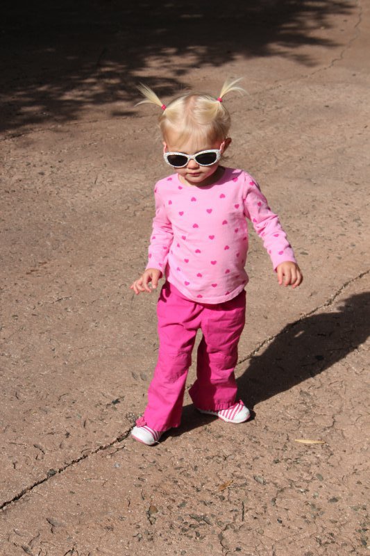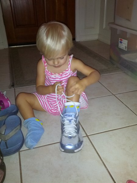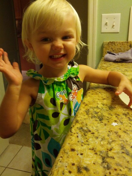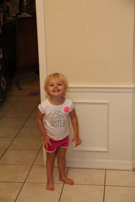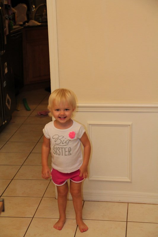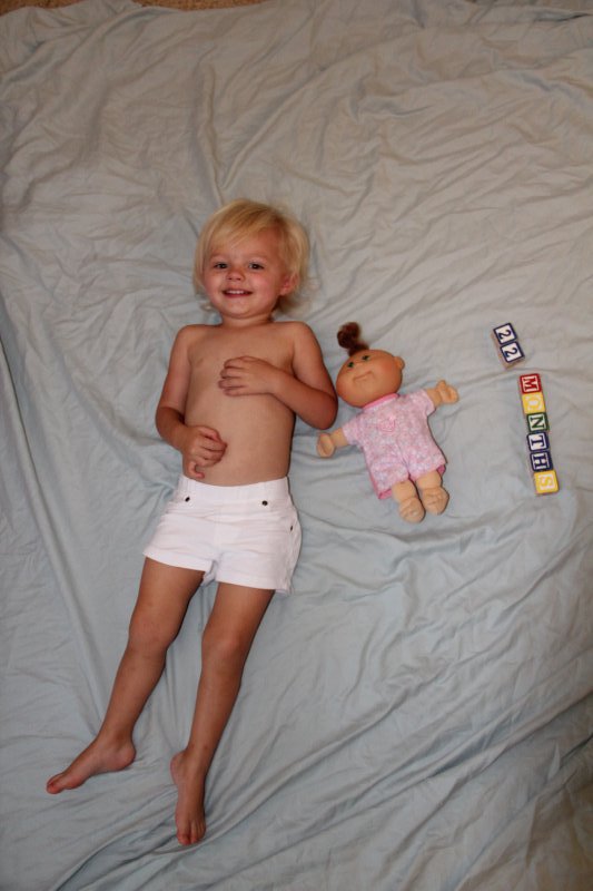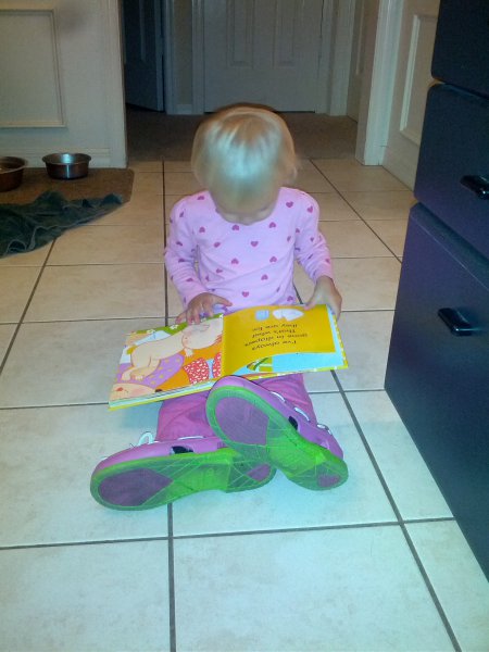 Sean started potty training one day while I was at work. Haley took to it so quickly! She was really ready I guess. She wears pants when we go out and I bring her potty in the car and at home she just goes bottomless and it is working really well. It would be great to only have to buy one set of diapers come April!