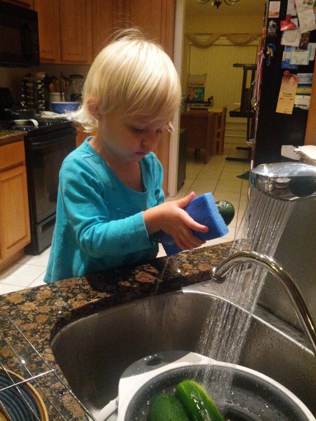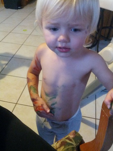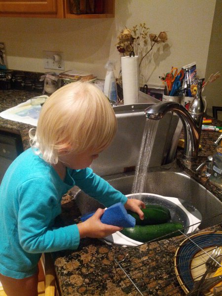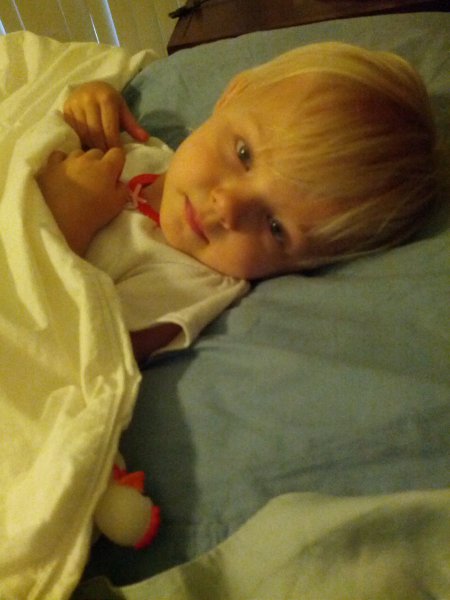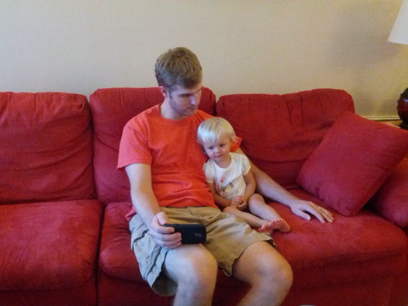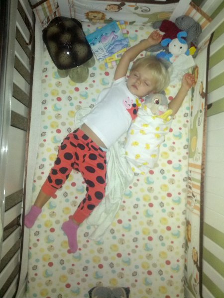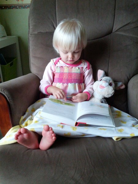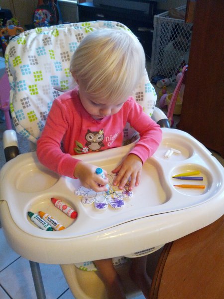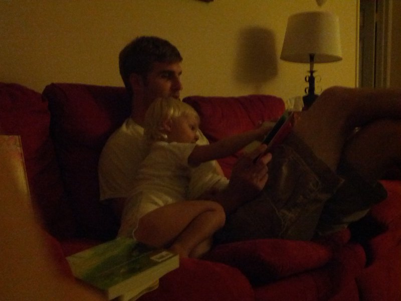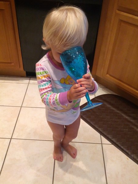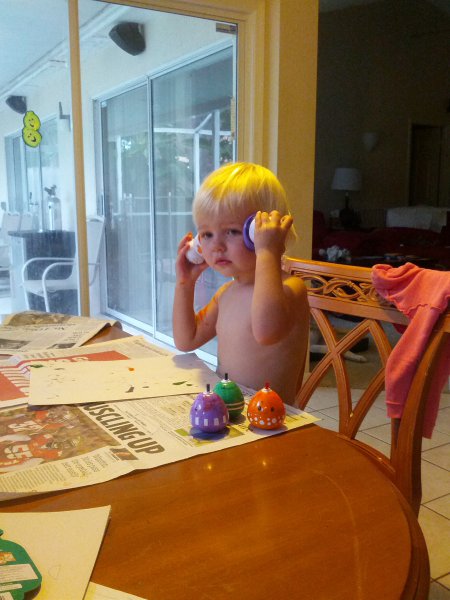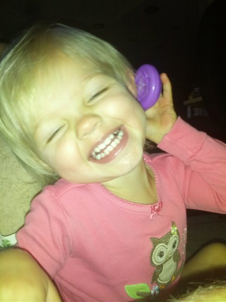 Sean started potty training one day while I was at work. Haley took to it so quickly! She was really ready I guess. She wears pants when we go out and I bring her potty in the car and at home she just goes bottomless and it is working really well. It would be great to only have to buy one set of diapers come April!