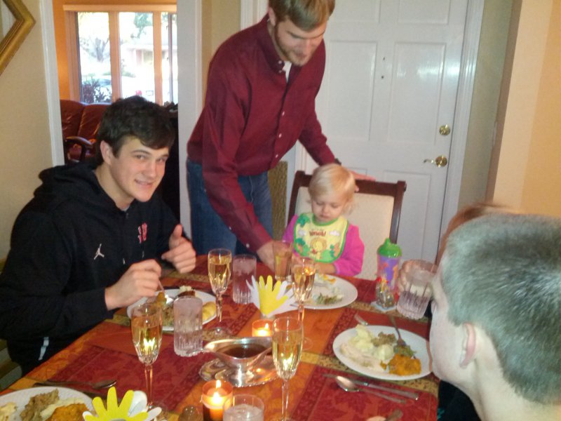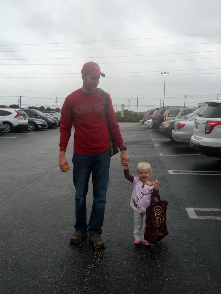 We had Thanksgiving at my Aunt & Uncle’s house in Tampa. That was a lot of fun too! It was good to see everyone who was there and I loved watching Haley play with her cousins. She even sat at the kids table for dinner 🙂 So cute! My parents stayed with us for the holiday and on Friday we went to the zoo. The weather was perfect! We all had fun and Haley got to feed the giraffes! And to complete the weekend/month, FSU beat UF! How much better can it get?!