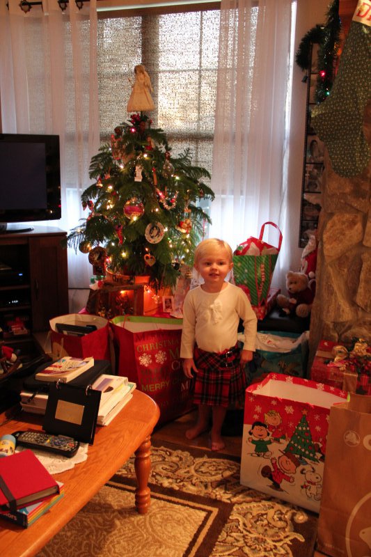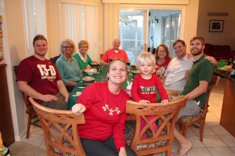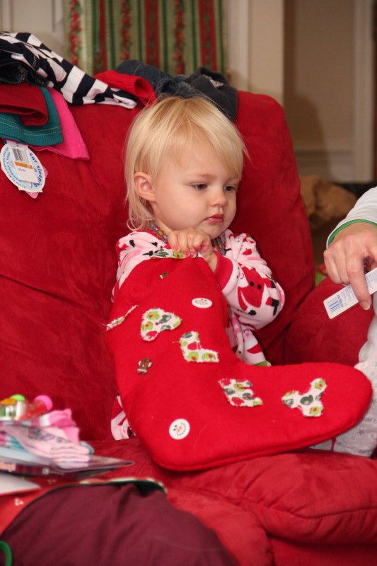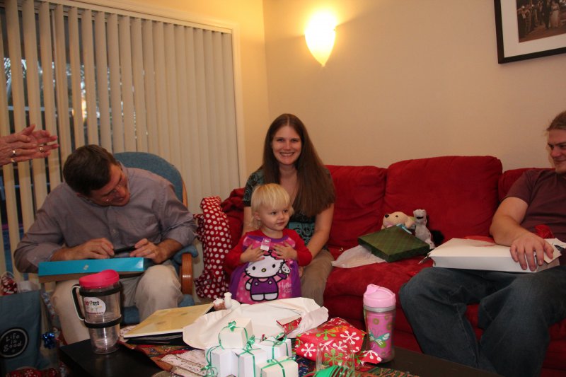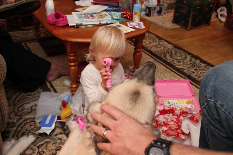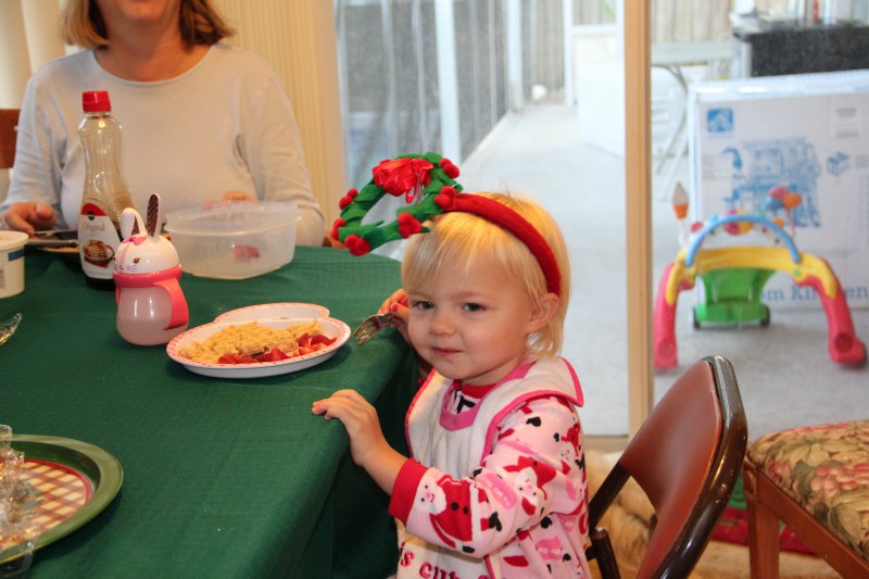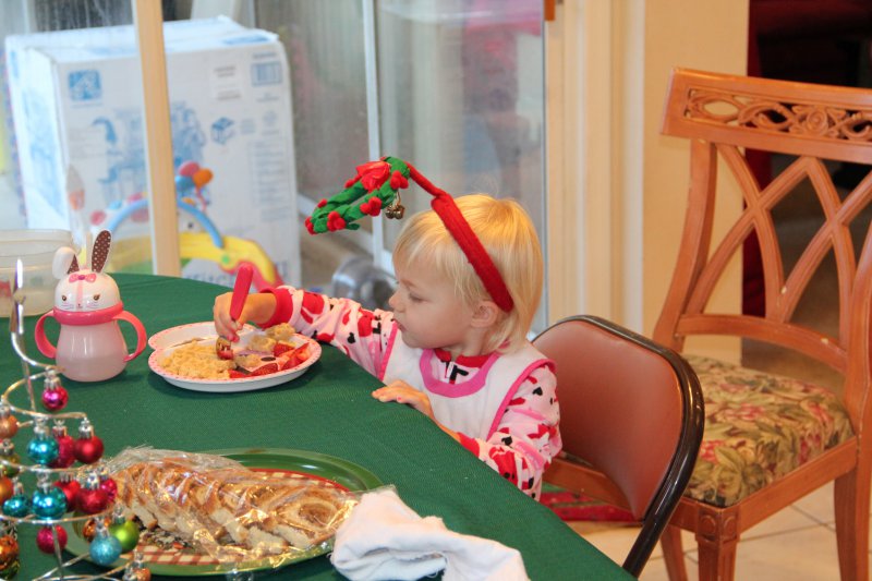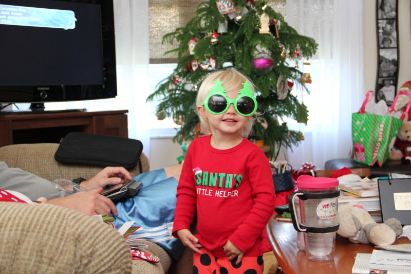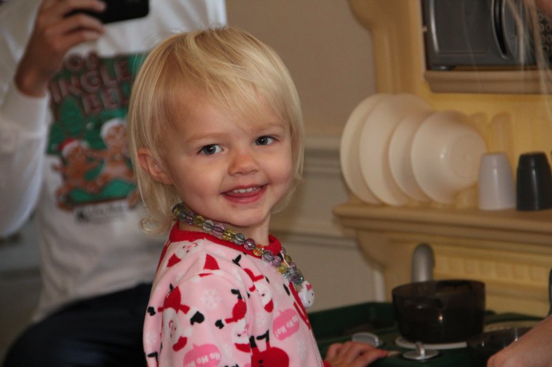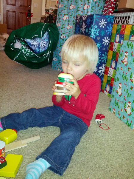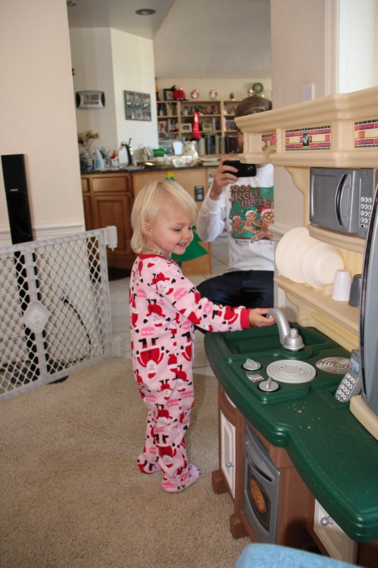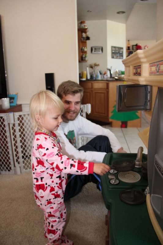 Christmas morning we had breakfast, opened stockings, and Haley got to see her gift from Santa. I think she was a little overwhelmed and didn’t really know what to think at first. But she got into it and made us food later on! We had N. Papa, Omi, and Aunt Rita back over that afternoon for Christmas dinner and more presents – so that was fun. I think we all had a great time and spending time with family was the best part. Haley did really well – she was tired and overwhelmed, but was still very good.