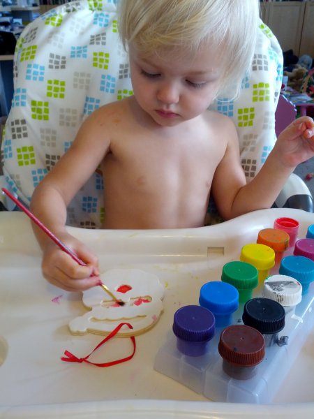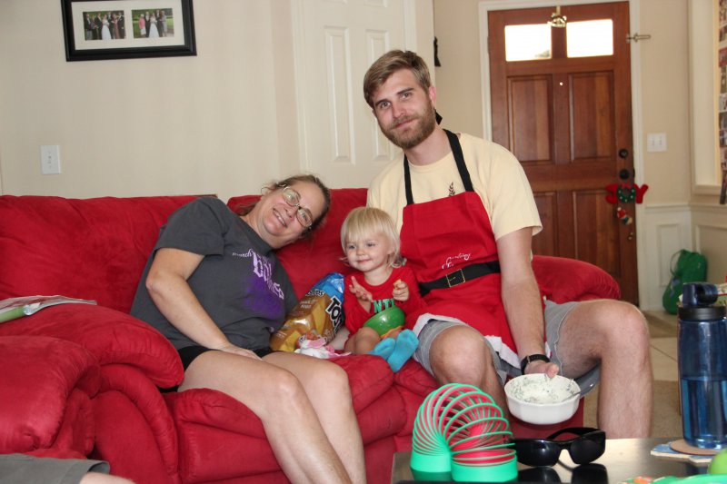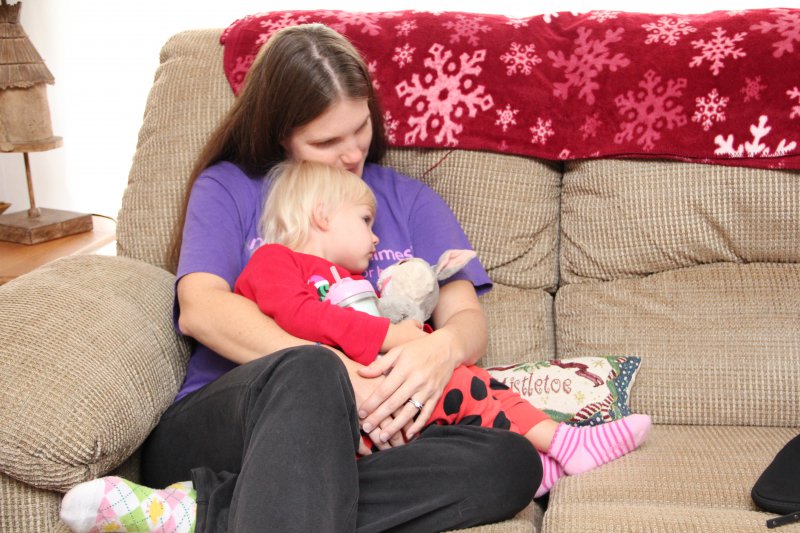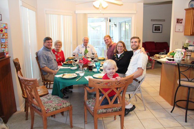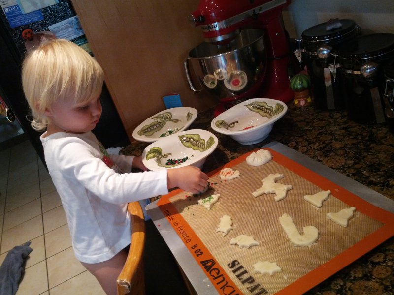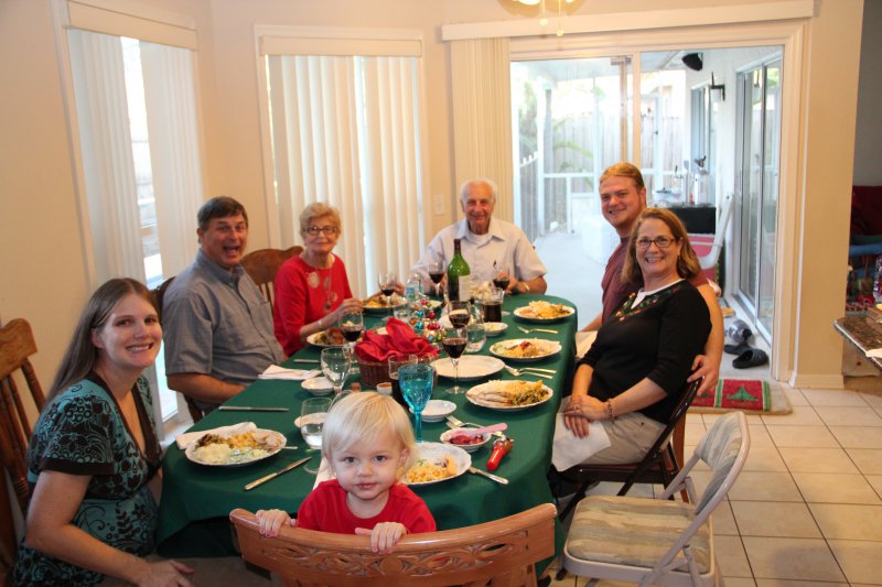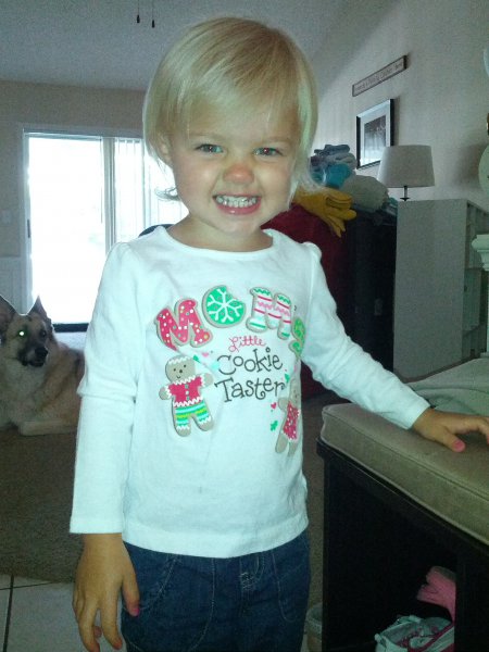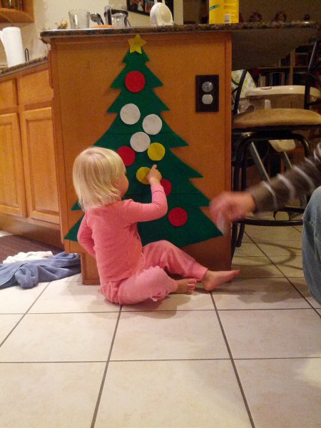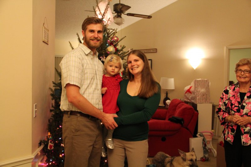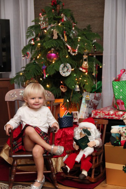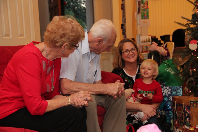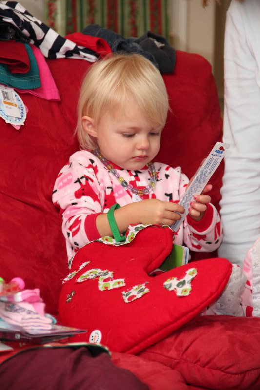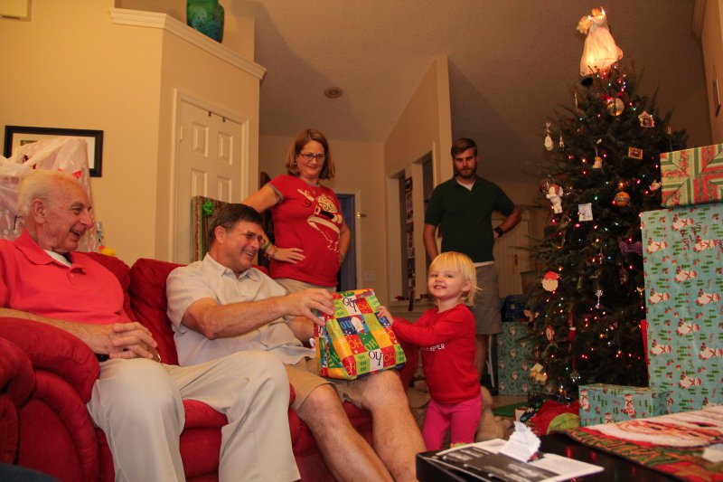 Christmas morning we had breakfast, opened stockings, and Haley got to see her gift from Santa. I think she was a little overwhelmed and didn’t really know what to think at first. But she got into it and made us food later on! We had N. Papa, Omi, and Aunt Rita back over that afternoon for Christmas dinner and more presents – so that was fun. I think we all had a great time and spending time with family was the best part. Haley did really well – she was tired and overwhelmed, but was still very good.