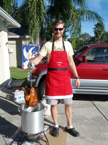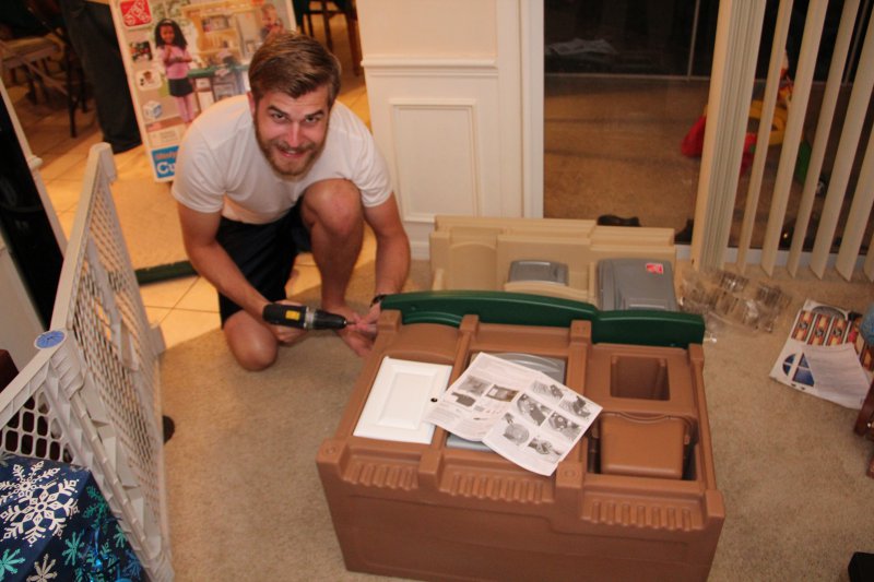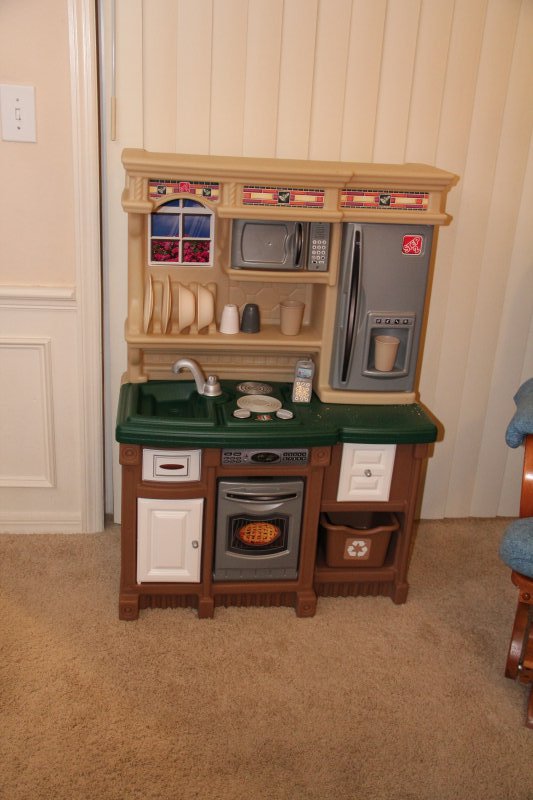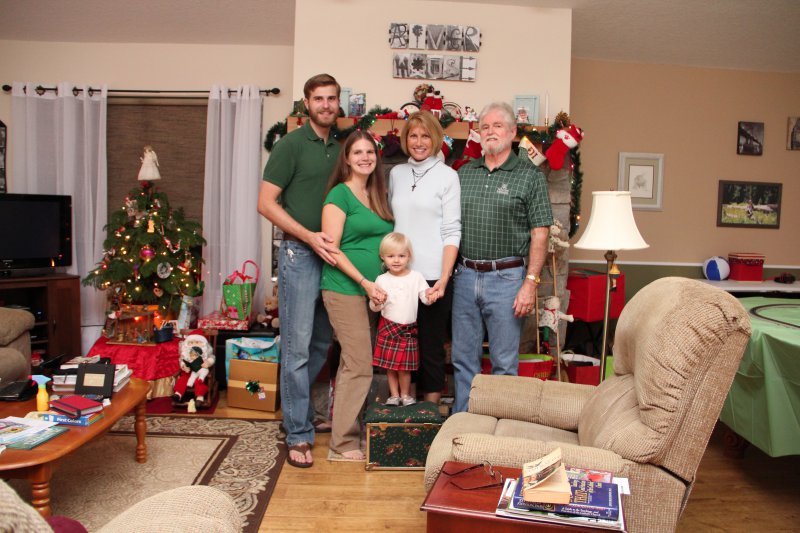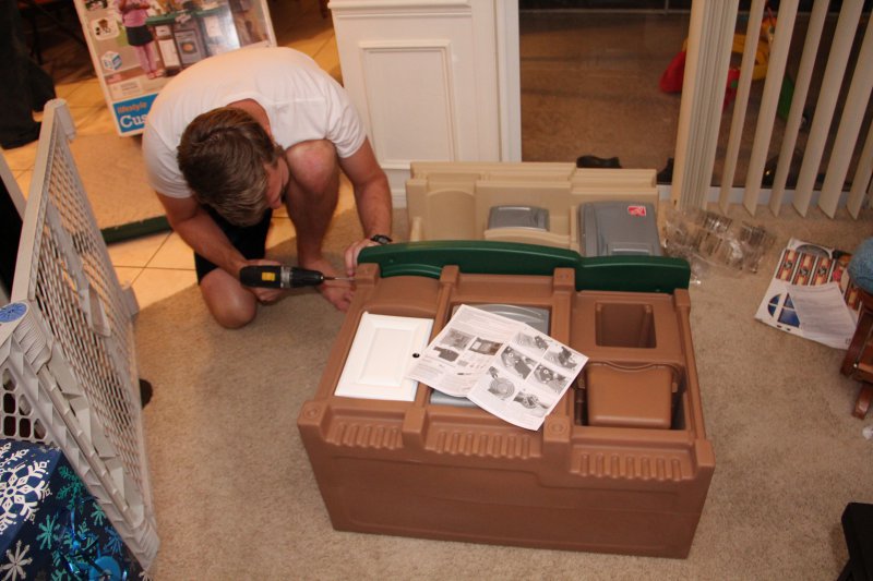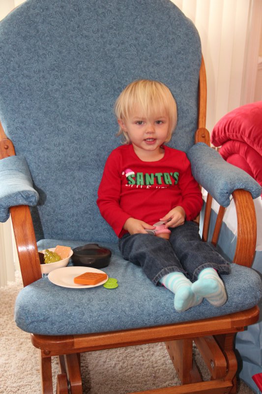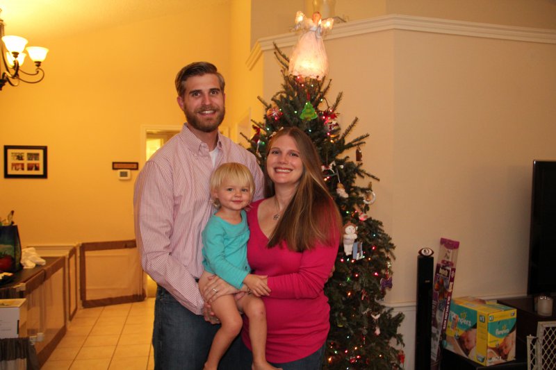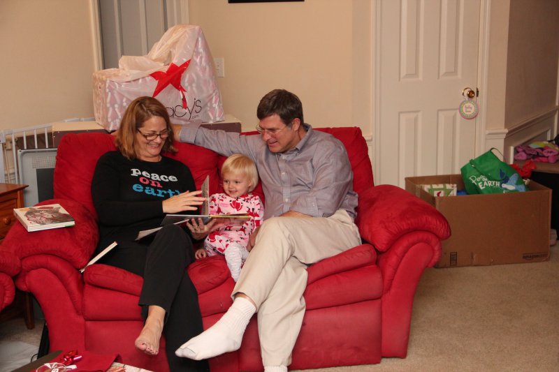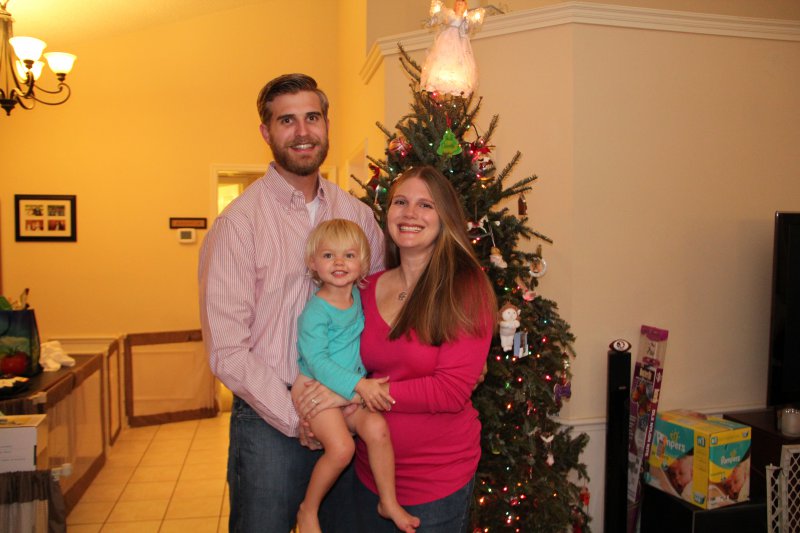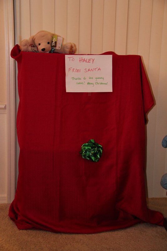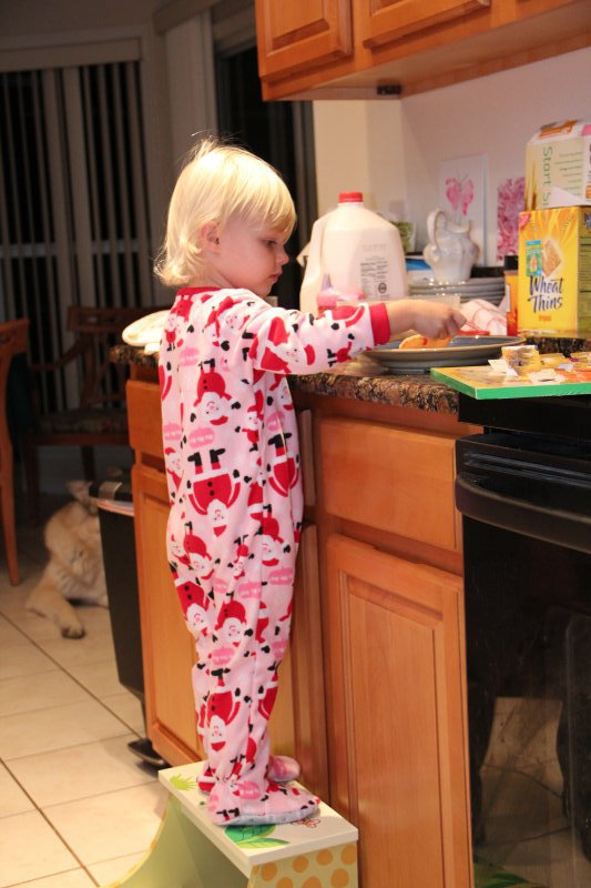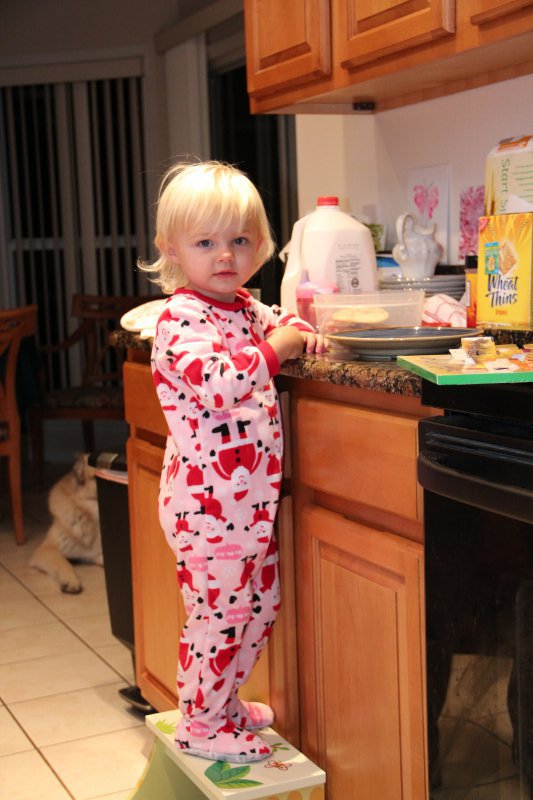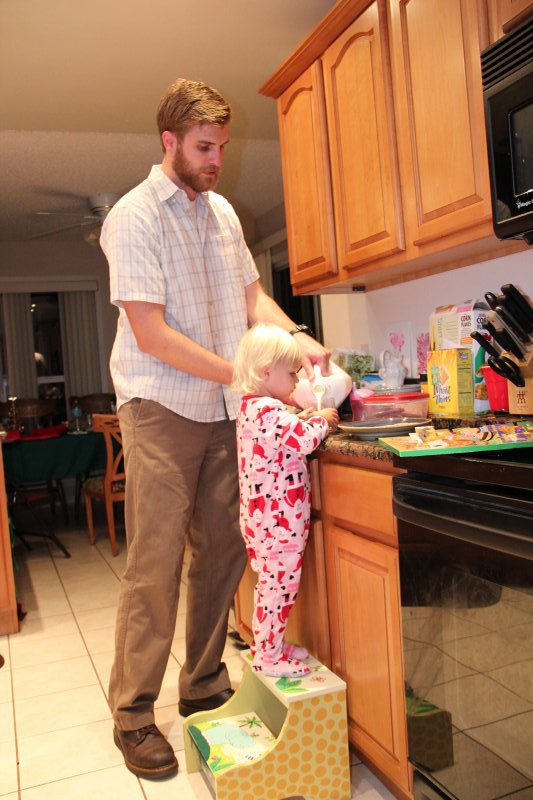 We had GG, Opa, & Uncle Nic stay with us for Christmas. Haley really enjoyed all the family time (and so did we!). On Christmas Eve Sean’s grandparents and aunt came over and we all had dinner – Sean fried a turkey again. It is so delicious that way! Then we all wen to Mass. Haley was really good and even got to go up front and sit to listen to a story – Mommy went too 🙂 That evening ‘Santa’ put together Haley’s new kitchen toy and Haley left out milk and homemade cookies for the big guy.